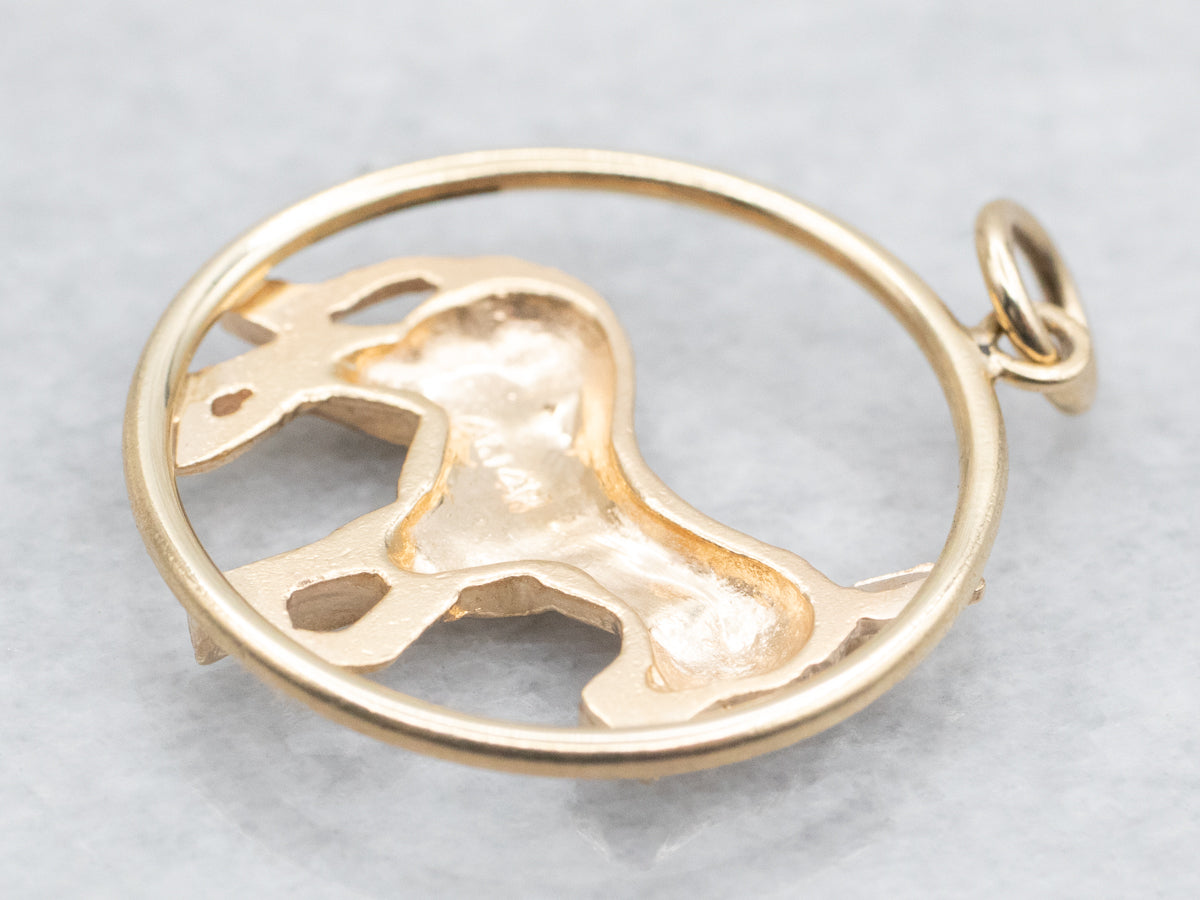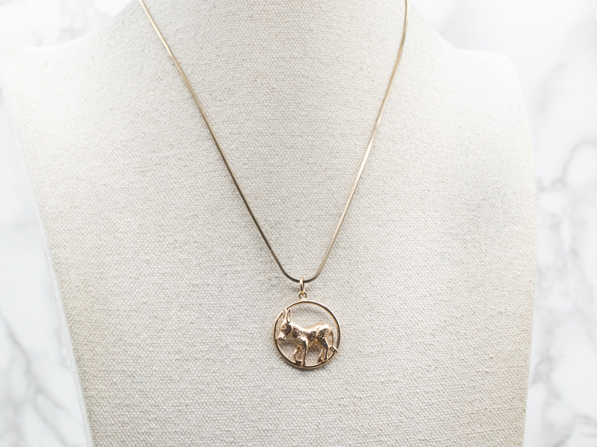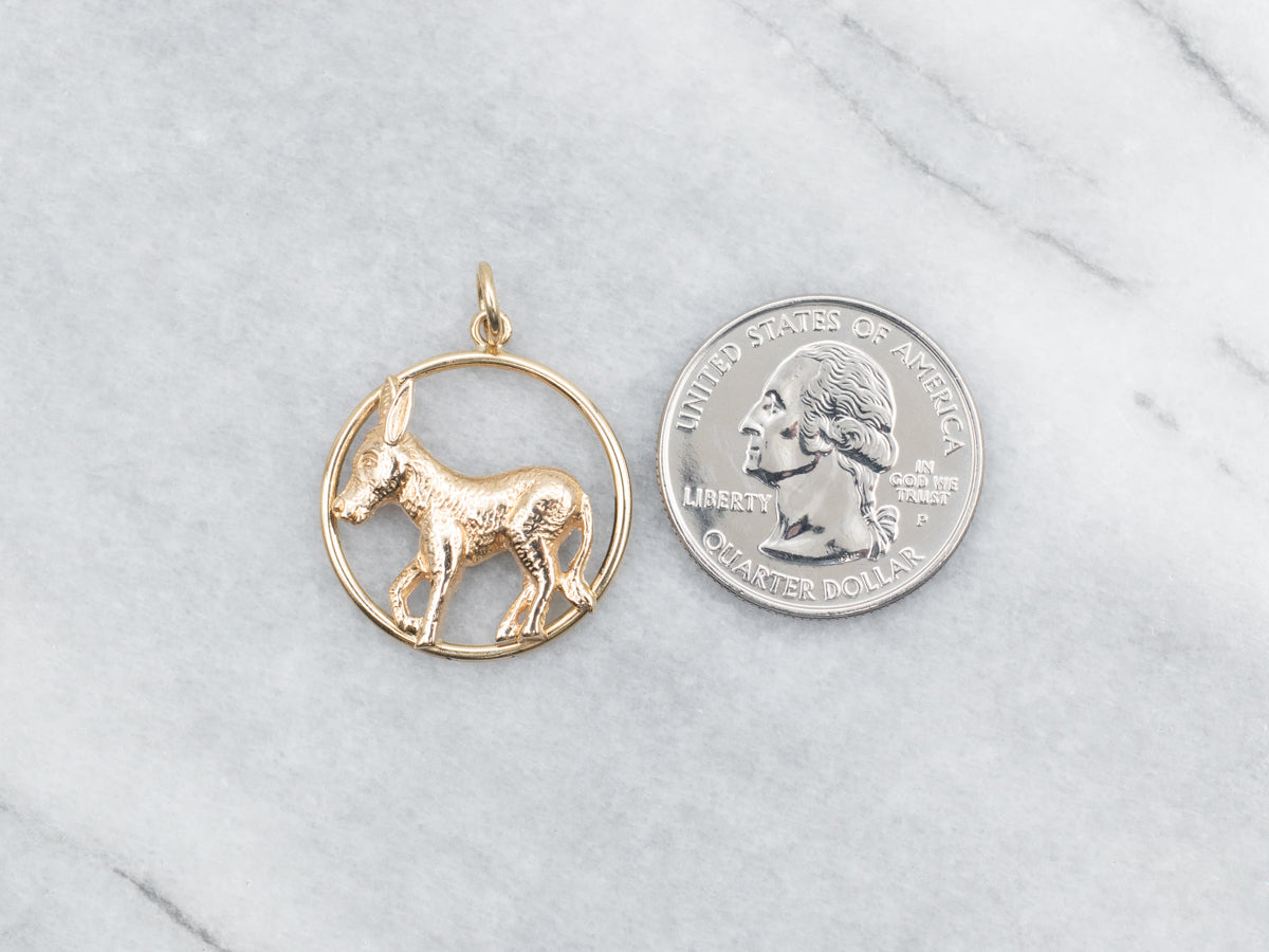 Made of lustrous yellow gold, this pendant features a playful mule design that adds a touch of quirk to any outfit. Elevate your accessory game with this fun piece.