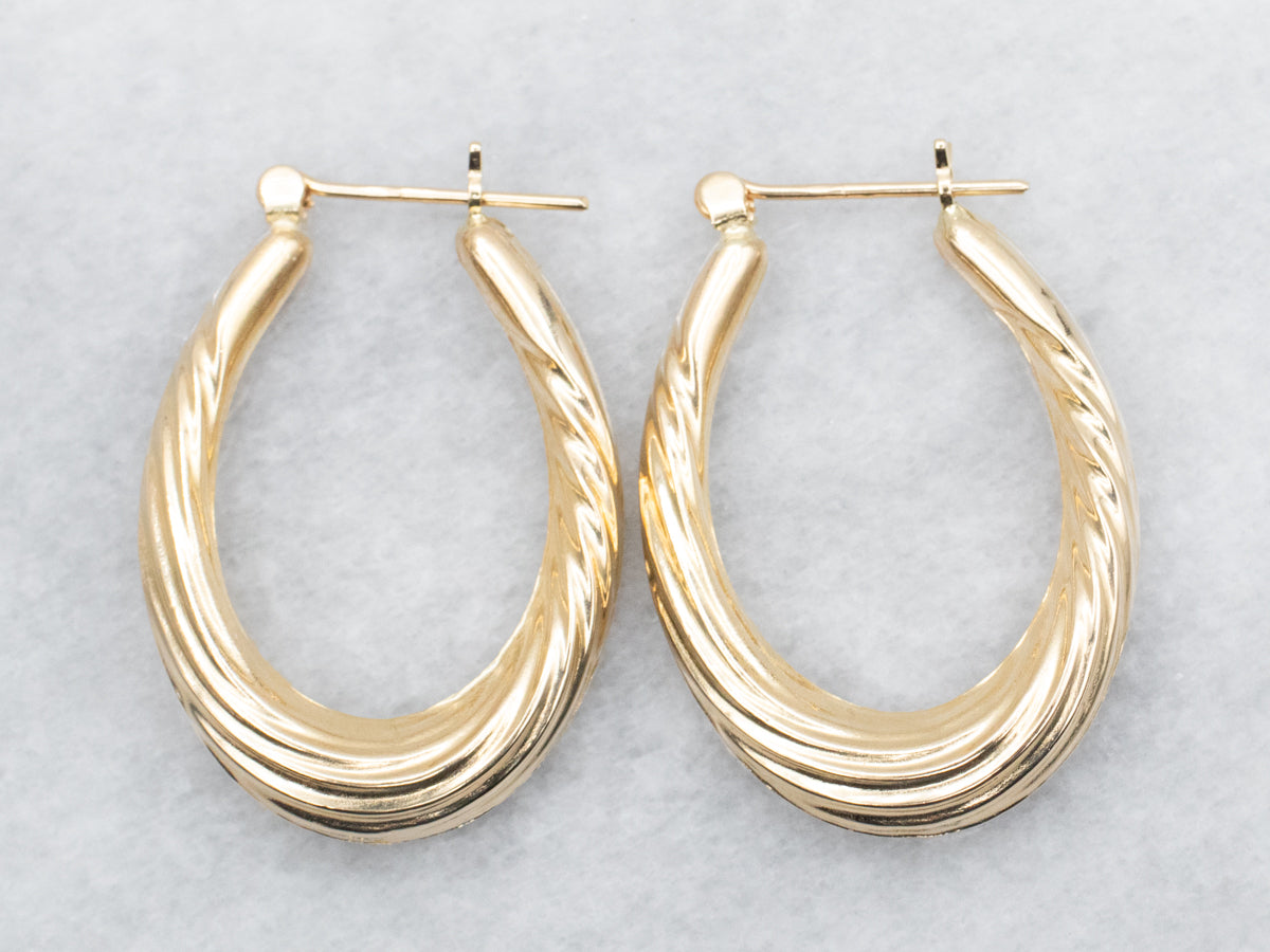 Add some unexpected twists to your jewelry collection with these playful earrings. The vibrant yellow gold adds a touch of luxury, while the unique twist design elevates these hoops to a statement piece. Perfect for adding a fun and stylish touch to any outfit!