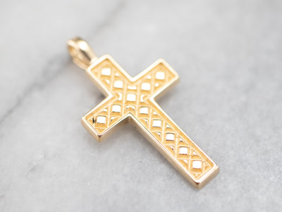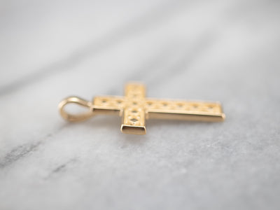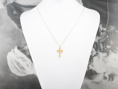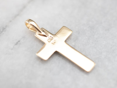 This 14 karat yellow gold cross has an old-world feel, sized and stylized for a man or women, this would make a thoughtful gift for a confirmation or wedding!