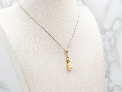 A gorgeous piece of jewelry, this yellow-gold pendant is perfect for special occasions. It's adorned with a beautiful pearl and detailed fringe, providing an elegant and sophisticated look. This quality accessory is sure to make a statement.