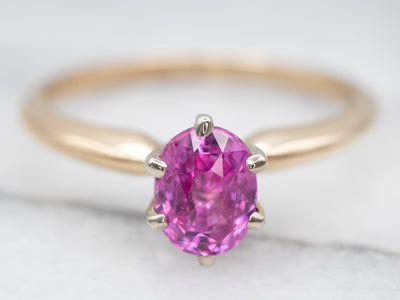 Metal: 14K Yellow Gold Gem: Pink Sapphire 1.07 Carats Gem Measurements: 4.9 x 6.3 mm, Oval Ring Size: 7.50 Marks: "14K*" Stamped on the inside band
