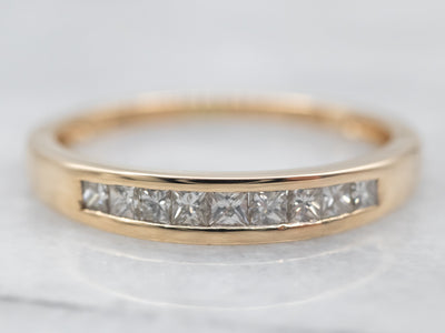 This handsome band adds a touch of sophistication to any occasion. Featuring a timeless design of yellow gold and princess-cut diamonds, it offers stunning beauty that will last a lifetime.
