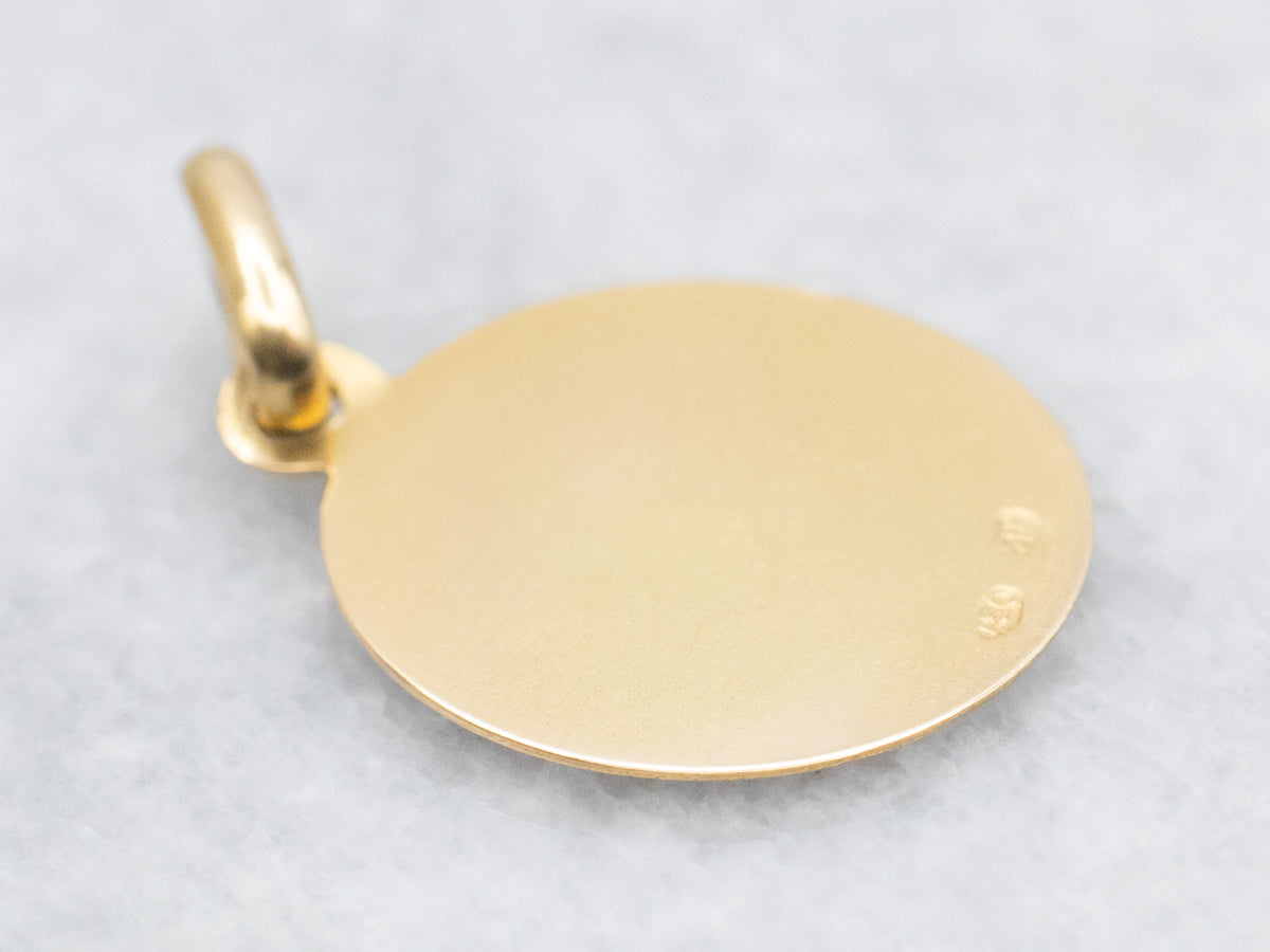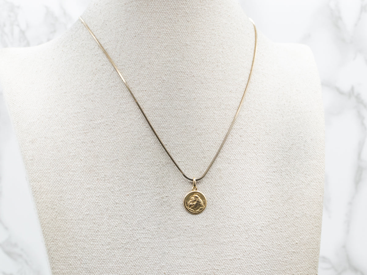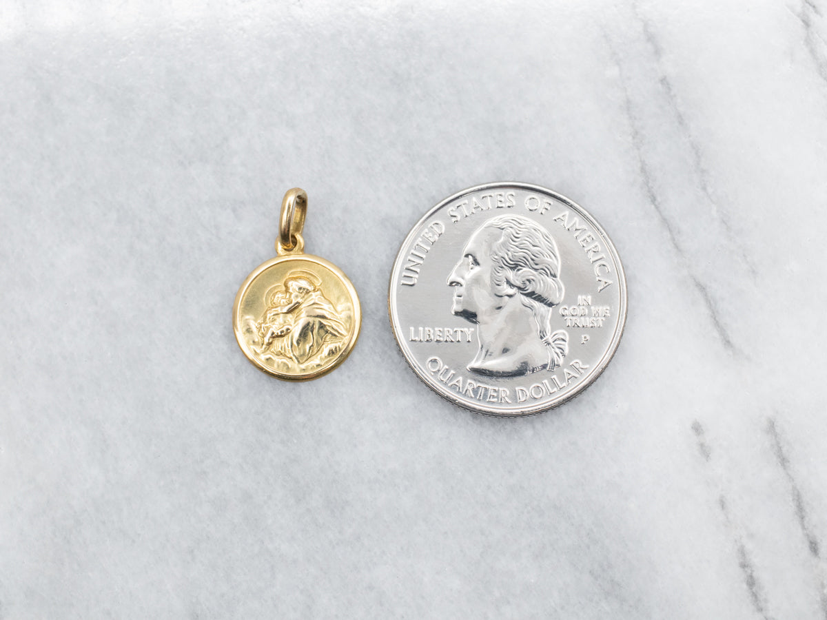 Crafted of high-karat gold and weighty against the throat, this simple vintage medallion features the classic image of Saint Anthony and Christ.