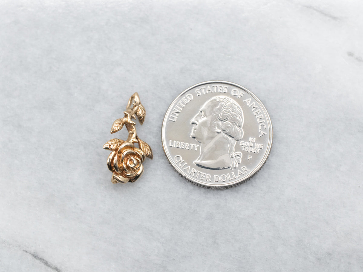 Jazz up any outfit with this rose pendant. This unique piece features a delicate rose made of yellow gold, bringing a touch of whimsy and elegance to any look. A perfect gift for yourself or a loved one!