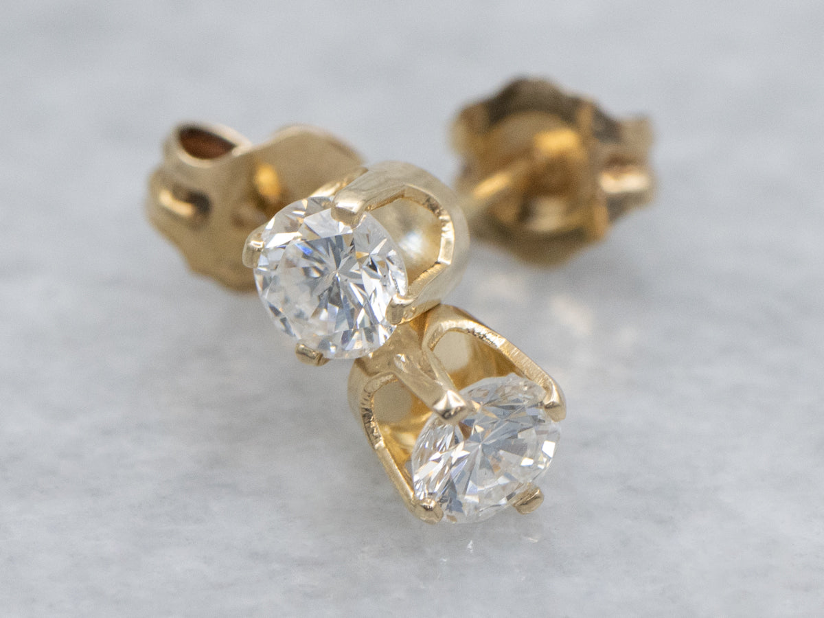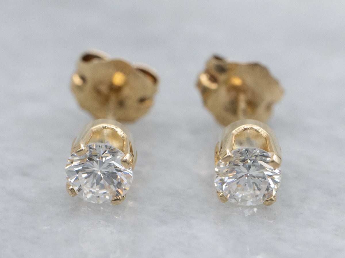 Yellow Gold Round Brilliant Diamond Stud Earrings