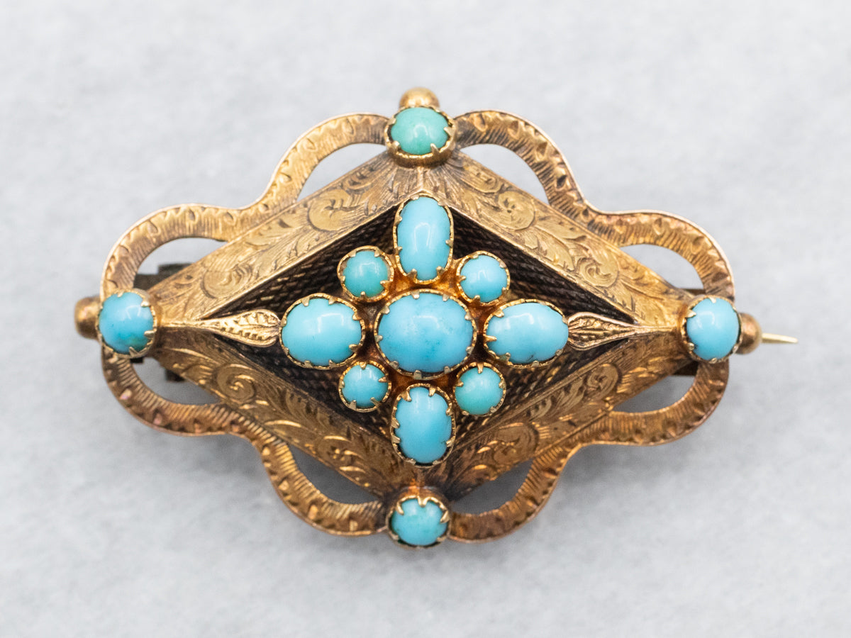 This beautiful turquoise brooch with its intricate, etched botanical details is a real show-stopper! It's the perfect accessory to add a touch of sophistication and flair to any look! For all your floral dreams, this yellow gold brooch is all you need!
