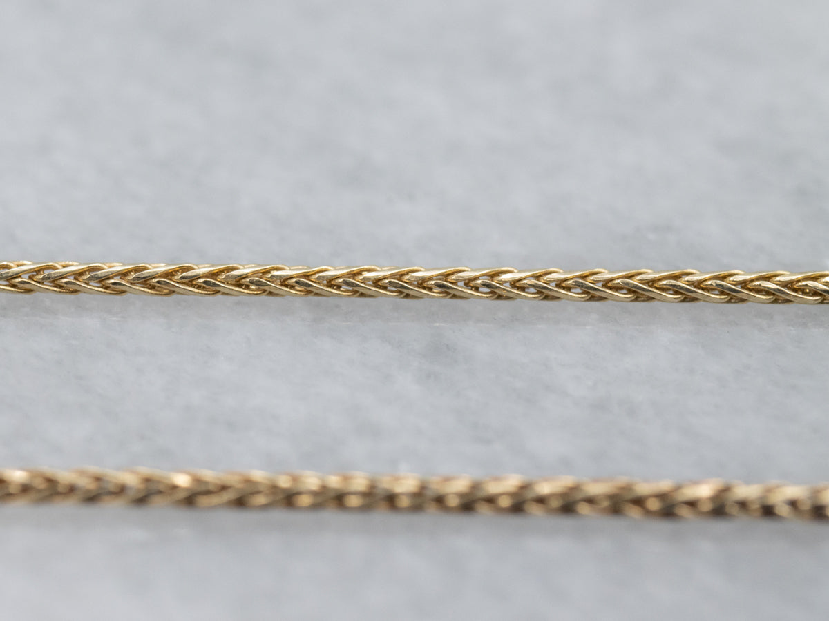 Crafted from lustrous yellow gold, this Italian wheat chain features an elegant, interlocking design that catches the light beautifully. The secure lobster clasp ensures your necklace stays safely in place throughout the day, making it a reliable choice for everyday wear or special occasions. A timeless piece that complements any style.